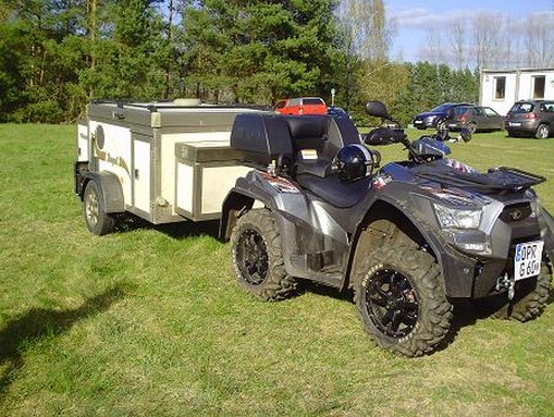 Quad mit 700 ccm Motor - Anhängerlast ungebremst 115 kg, gebremst 515 kg, Höchstgeschwindigkeit 96 km/h, Preis ca. 9.600 € ohne Anhänger.