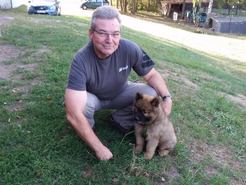 Er heißt Akimo, ist ein Eurasier und am 22.06.2018 geboren. Obwohl Akimo frühreif wirkt, ist eine BH im Oktober noch nicht vorgesehen ;-).