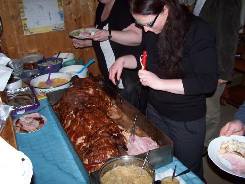 Es war ein gemütliches Beieinander. Highligth war kein Hund, sondern ein Schwein, und zwar ein Backschwein, obwohl noch zwei Pudel zur Auswahl standen ;-). Das Backschwein war ein absoluter kulinarischer Genuß !!!