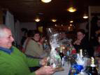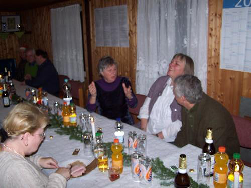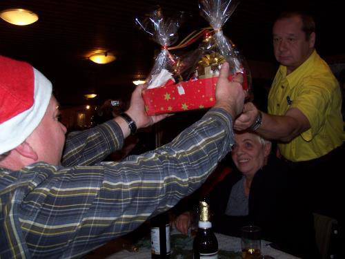 In diesen Jahr machten wir eine Tombola. Jeder hatte ein Geschenk zu verpacken, das dann verlost wurde. Die diesbezügliche Moderation übernahm Roland, der mit Entertainer-Qualitäten überaschte. Mathematisch verblüffend war, dass drei Mitglieder ihr eigenes Geschenk gewannen.
